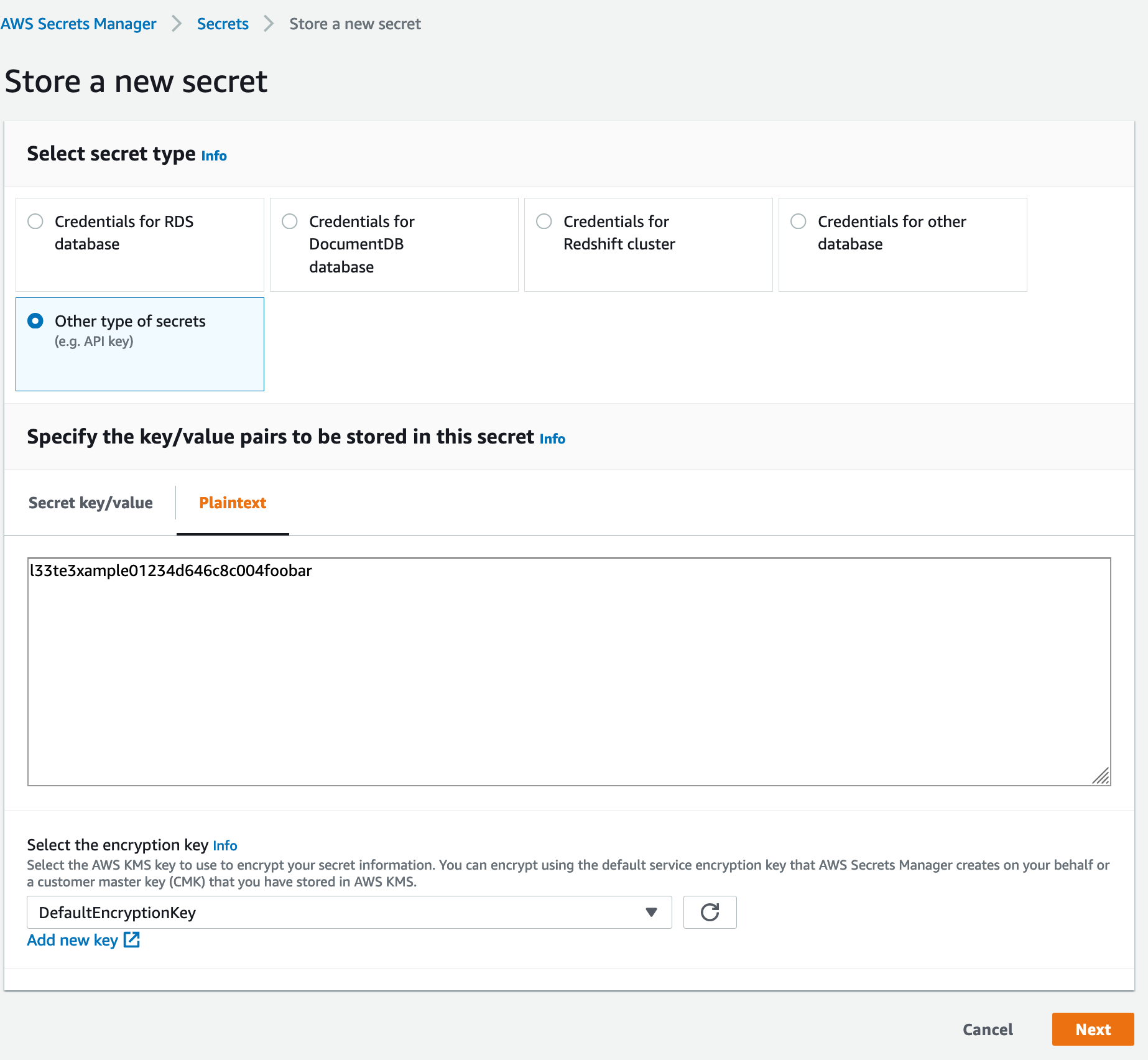 Appendix: How to create a secret for the VCS token in AWS Secrets Manager